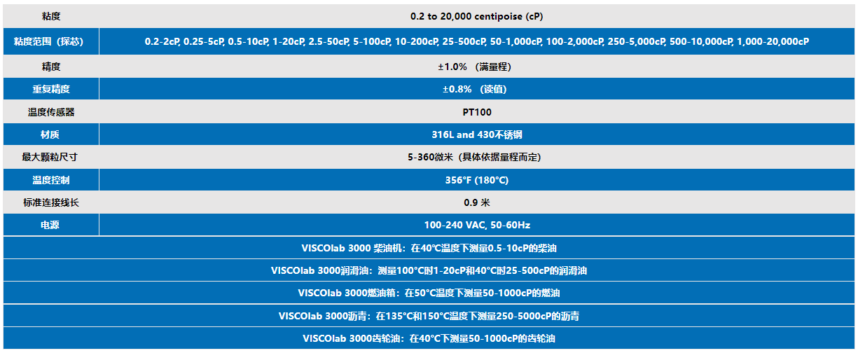 VISCOlab3000實驗室粘度計技術參數(shù):
