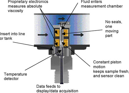 通用汽車的電子動(dòng)機(jī)部門使用劍橋粘度計(jì)在他們最新的H-series 6000馬力的引擎來(lái)監(jiān)測(cè)燃料稀釋和其他特征的實(shí)時(shí)潤(rùn)滑油。除通用,法拉利,路博潤(rùn)公司,Equilon特古梅斯,美國(guó)海軍,美國(guó)軍隊(duì)和許多別人已經(jīng)發(fā)現(xiàn)劍橋的理想潤(rùn)滑和粘度計(jì)監(jiān)測(cè)液壓油監(jiān)控健康和預(yù)測(cè)失敗的石油。劍橋粘度計(jì)基本上是簡(jiǎn)單、崎嶇、精確和重復(fù)的操作環(huán)境具有顯著振動(dòng)盡管。一個(gè)關(guān)鍵的技術(shù)就是它的公司使用一個(gè)單一的、非接觸式運(yùn)動(dòng)部件都來(lái)清潔和測(cè)量。活塞的運(yùn)動(dòng)控制,以便它可以監(jiān)控流體粘度和使傳感器的測(cè)量室清潔,所以,該傳感器至少需要操作員注意。溫度探測(cè)器也包含在測(cè)量室,這樣兩個(gè)溫度和粘度出名的是每一個(gè)測(cè)量。該公司獲得專利的自動(dòng)清潔的特點(diǎn)使得劍橋傳感器操作和on-engine無(wú)故障內(nèi)聯(lián)。