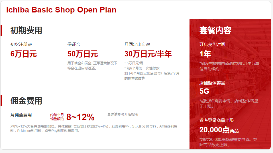 中國賣家相比日本本土公司出店,多出來的一個費用就是保證金50萬日元,樂天官方的描述是:用于債金和罰金, 正常運營情況下將會在退店時返還。這是因為日本本土公司的經營相對較為規范,中國賣家略微有些草莽,設置了保證金,確保到時候出現售后糾紛或者其他問題時,可以予以一定的懲戒作用。督促賣家認真經營,遵守平臺規則和國家法律法規。只要合規經營,最后可以返還。